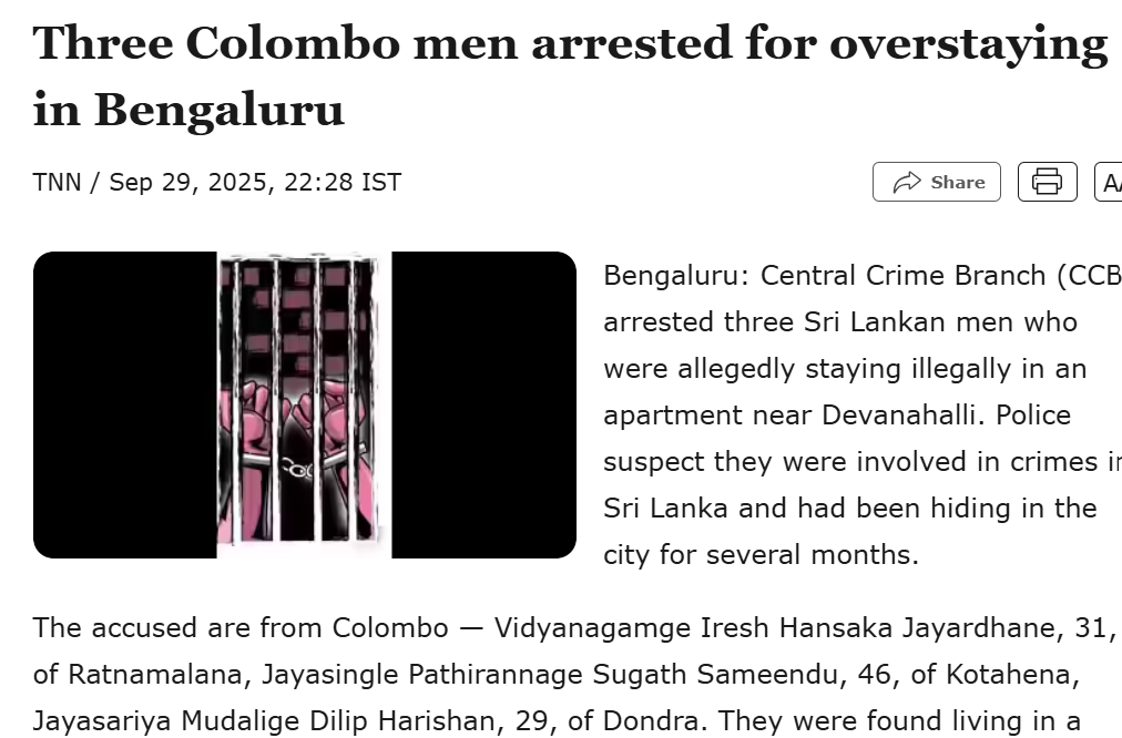 ඉරේෂ් හසන්ක, සුගත් සමින්දු සහ දිලීප් හර්ෂණ යන මෙරට අපරාධවලට සම්බන්ධ ශ්රී ලාංකිකයන් තිදෙනාව ඉන්දියාවේ…